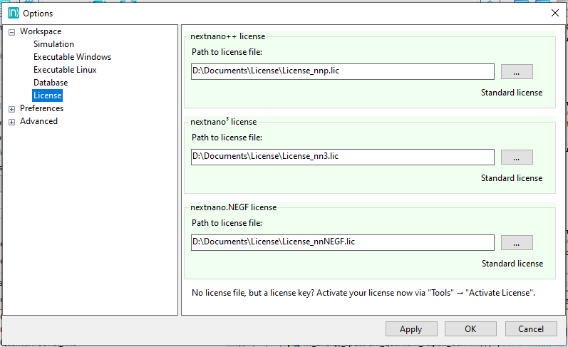 If no licenses are found at program start of nextnanomat, the license activation dialog will prompt automatically.