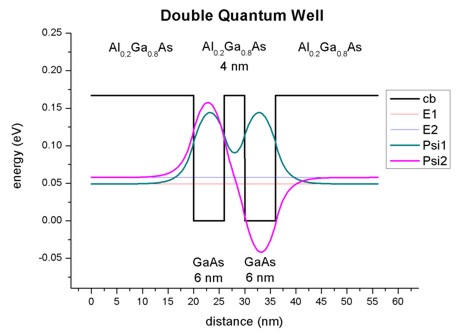 Double Quantum Well: AlGaAs / 6 nm GaAs / 4 nm AlGaAs / 6 nm GaAs /