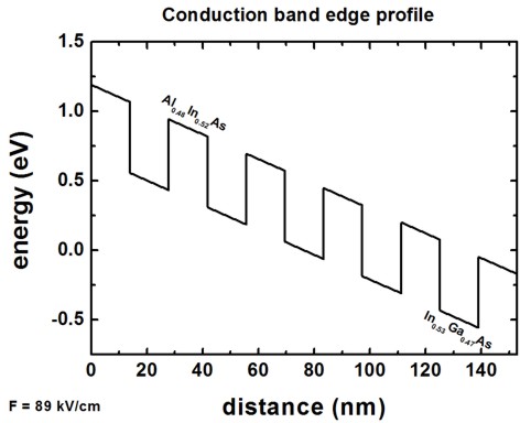 This tutorial is based on the quantum-cascade structure (Figures 12 (b) and 16 (b)) that has been presented in the following paper: